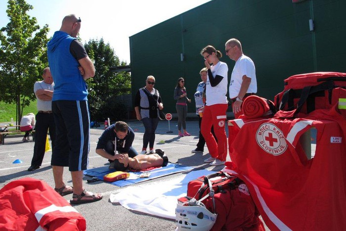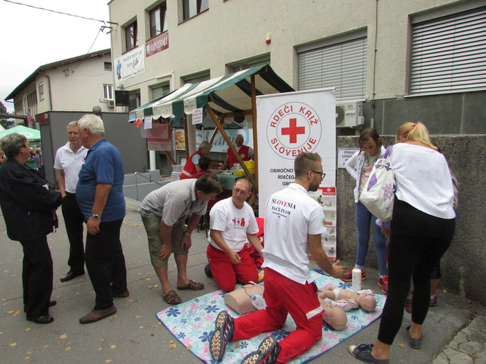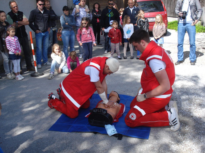 Delovanje Rdečega križa sva predstavili podpredsednica Majda Verbič in sekretarka Anica Smrekar, osnovne ukrepe prve pomoči Luka Mehle in Mitja Šimonka - člana ekipe evropskih prvakov prve pomoči, temeljne postopke oživljanja pa reševalec David Drčar.