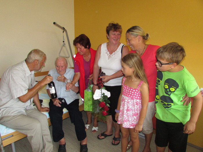 Člani Krajevne organizacije RK Krka so v sredo, 5. 8. 2015 obiskali svojega krajana Petra Bošnjaka v Domu starejših občanov v Grosupljem in mu voščili za stoti rojstni dan.