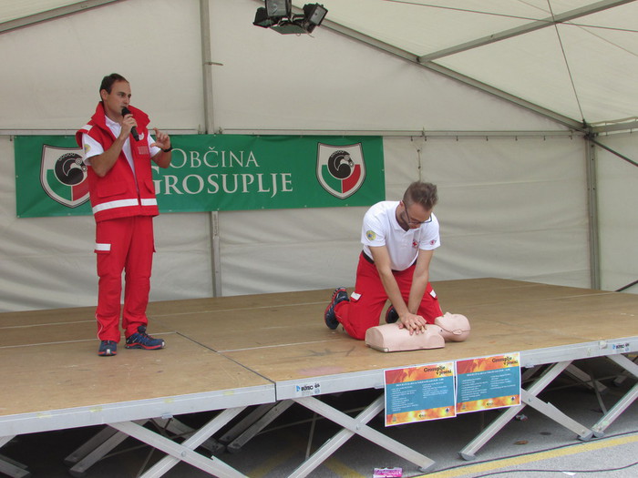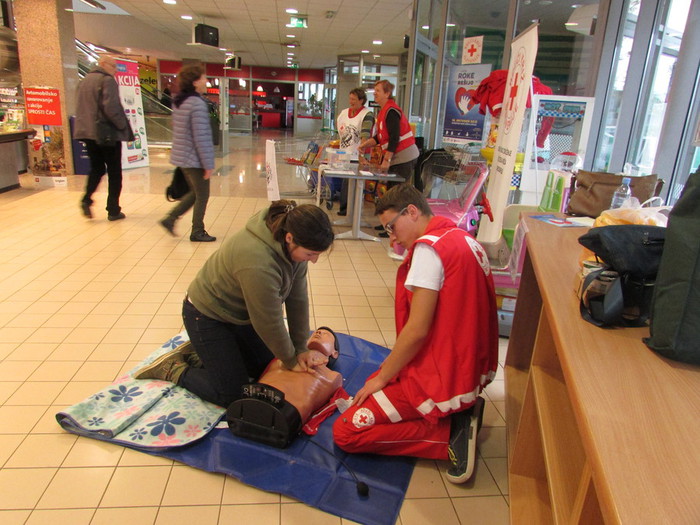 Šest članov ekip prve pomoči RKS – OZ Grosuplje je v soboto, 17. 10. 2015 dopoldne nudilo pouk temeljnih postopkov oživljanja pri nenadnem srčnem zastoju v trgovskih centrih Mercator, Spar in Tuš v Grosupljem. Veliko ljudi je prisluhnilo, pogledalo, 71 pa jih je tudi pokleknilo k lutki, prepletlo prste in začelo z masažo srca in umetnim dihanjem, da bi v kritičnem trenutku znali pomagati. Tako smo tudi mi izkoristili Evropski dan oživljanja za širjenje znanja in opogumljanje ljudi, da nekaj storijo, če se znajdejo v taki situaciji, ko njihove roke lahko rešijo življenje.