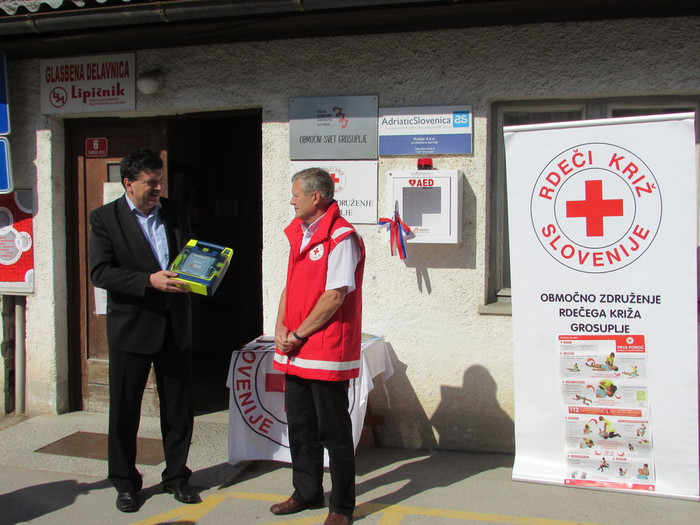 Ob svetovnem dnevu Rdečega križa, ki je tudi prvi dan tedna Rdečega križa, je Grosuplje pridobilo prvi javno dostopen defibrilator - AED, postavljen v omarici ob vhodu v zgradbo na Taborski cesti 6, kjer je tudi sedež RKS – Območnega združenja Grosuplje. Defibrilator je predal v uporabo župan Občine Grosuplje, dr. Peter Verlič ob prisotnosti njegovega pooblaščenca Iztoka Vrhovca, direktorja občinske uprave Dušana Hočevarja in zainteresiranih posameznikov.