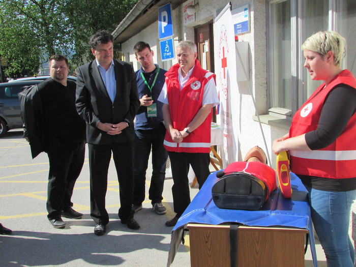 Ekipa prve pomoči OZ Grosuplje je istočasno sodelovala na otvoritvi defibrilatorja na RKS v Ljubljani.