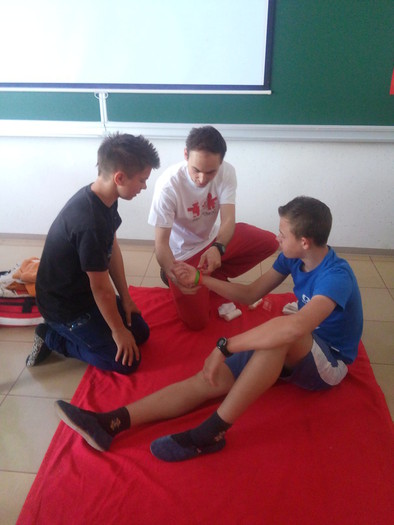 Naravoslovni dan pa je namenjen tudi spoznavanju osnovnih ukrepov prve pomoči. Poleg reševalca Davida Drčarja sta letos učence poučevala Luka Mehle in Mitja Šimonka, člana ekipe prve pomoči RKS – OZ Grosuplje. Ekipa je aktualni državni prvak ekip prve pomoči in se intenzivno pripravlja na udeležbo na evropskem preverjanju FACE, ki bo potekalo septembra letos v Romuniji. Učenci so pokazali veliko zanimanje in upajmo, da bodo pridobljeno znanje znali uporabiti, če bo to potrebno.